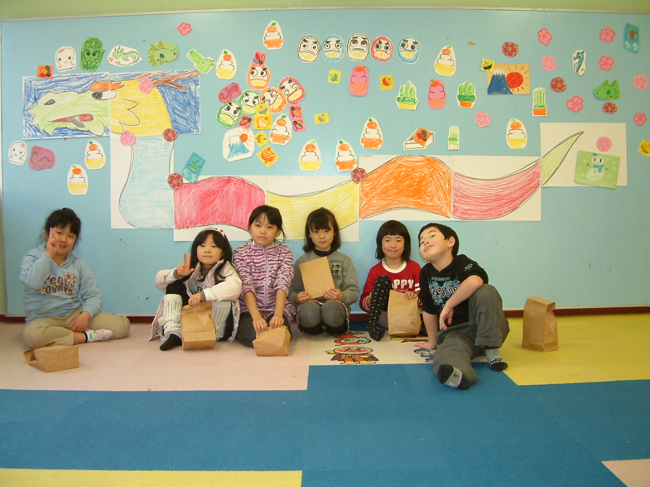 みんなが色を塗った大きな龍のイラストと