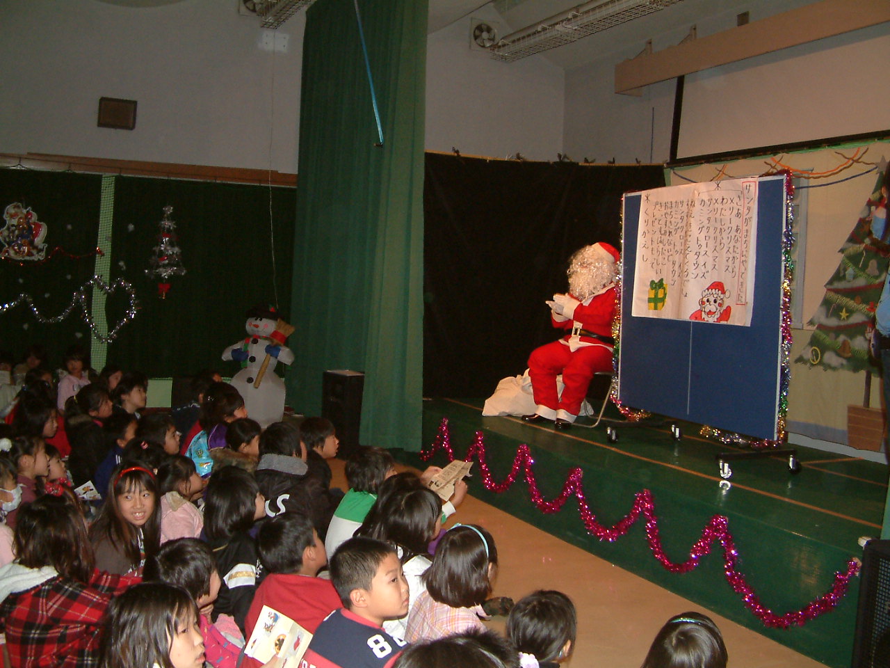 ゲーム大会のあとはクリスマスソングをみんなで歌って、サンタさん登場です。