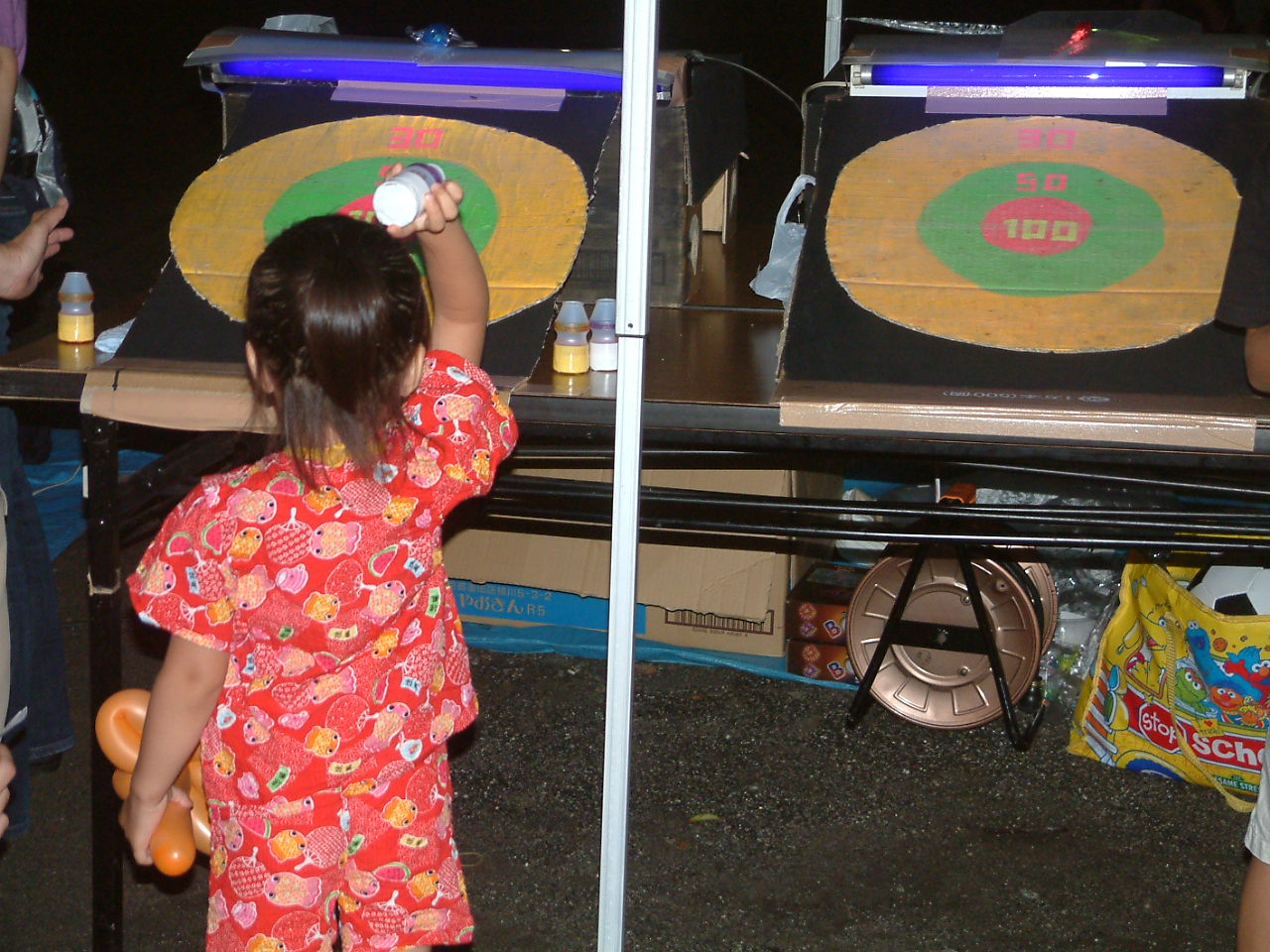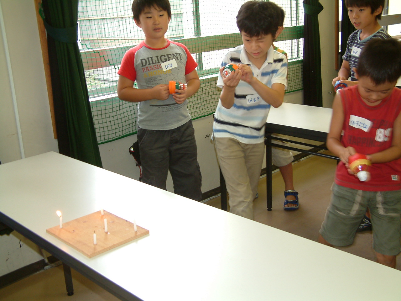 空気砲で的当ては、みんな楽しくやっていました。