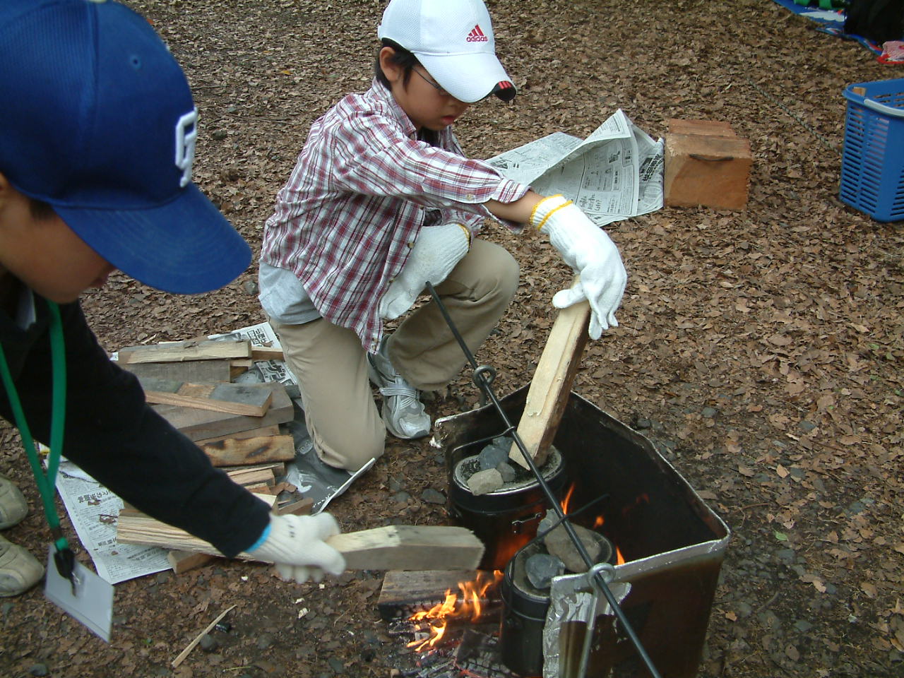 今回はナタで薪を切る練習と飯盒でご飯を炊くことをしました。