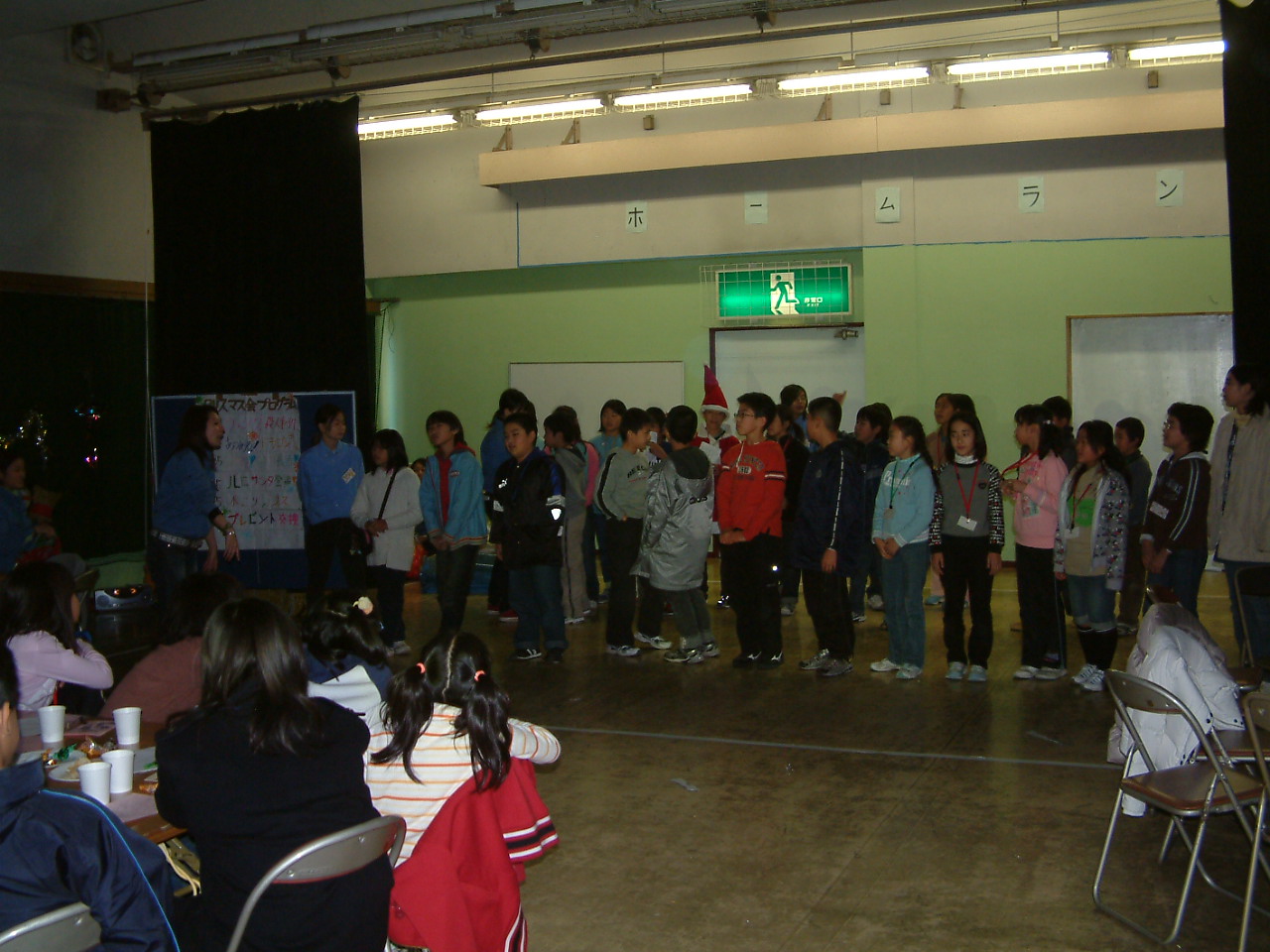 まず、全体の出し物①「ウィンクキラー」を全員でやり、その後に1班から順番にこの日のために準備してきた出し物を各班、披露しました。