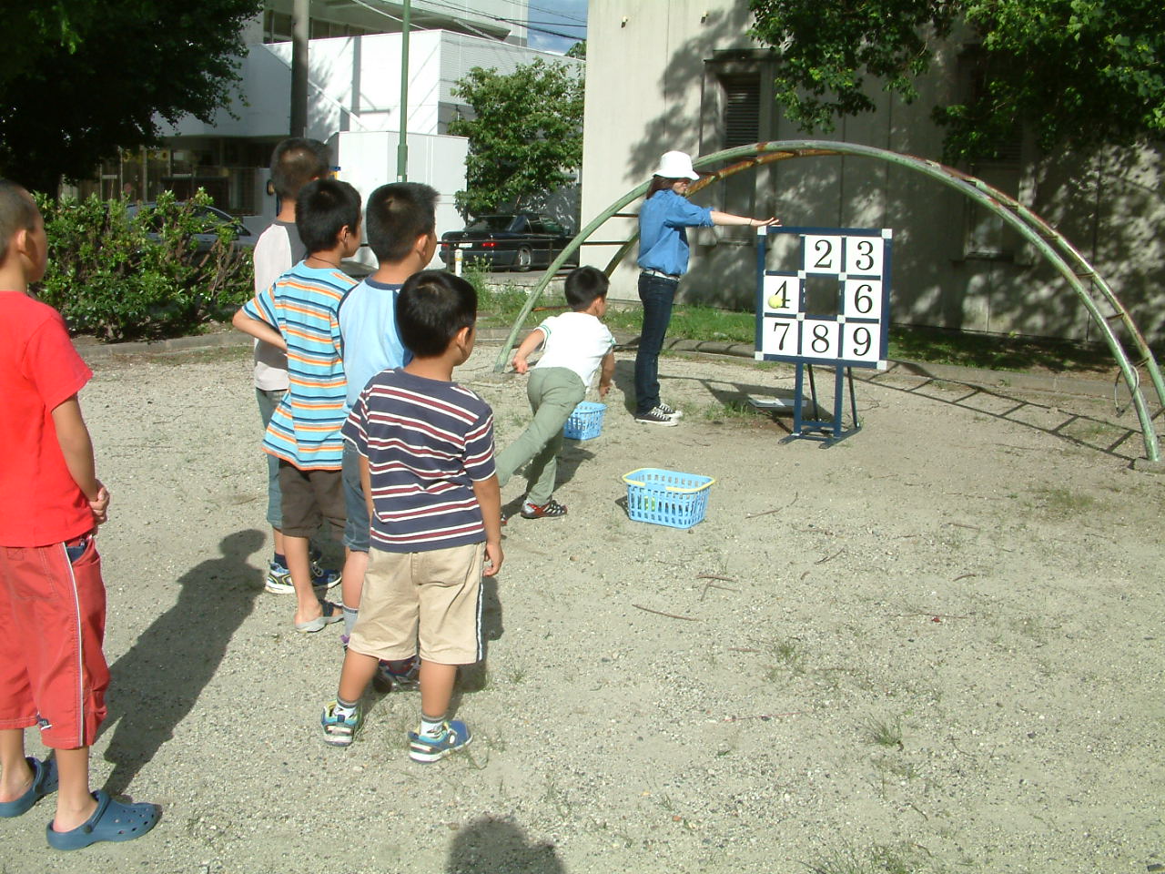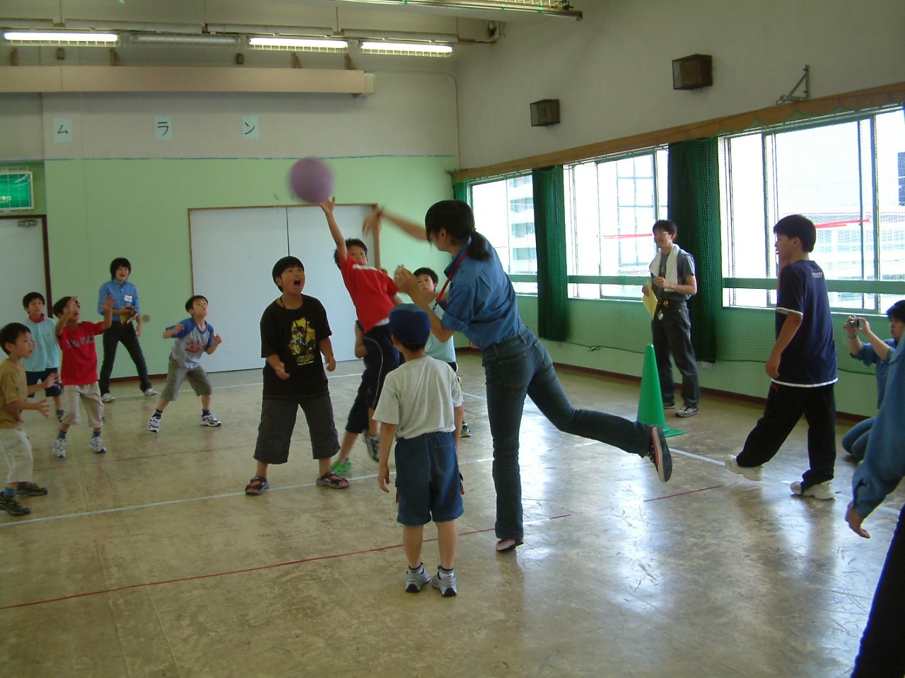 2年生の子も高学年の子が投げたボールをキャッチしていました。