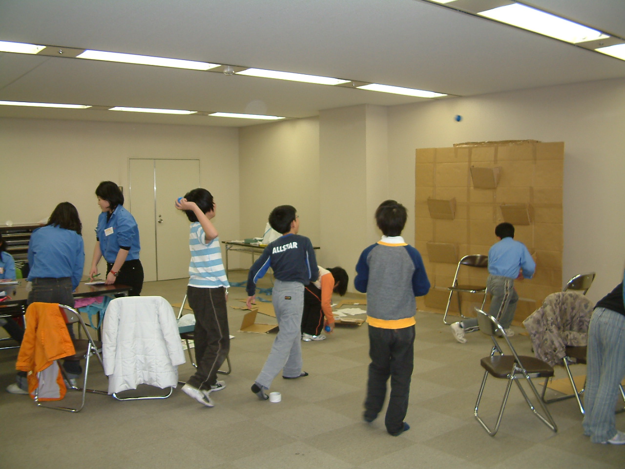 待ち時間はペットボトルを使った的当てにて肩慣らしをしました。こちらも大盛況で各自好きな距離でコントロールの調整をしていたよ。